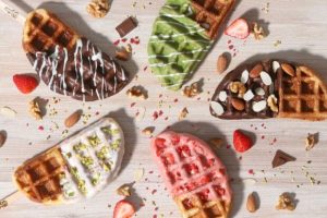 北海道産小麦粉100%のクロワッサンの生地をワッフルメーカーで焼き上げる、外はサクサク中はフンワリした新食感スイーツです。トッピングはチョコレートやフルーツ、クッキー等多数ご用意致しております。一度食べたらやみつきになる「クロッフル」ぜひ一度お試しください。