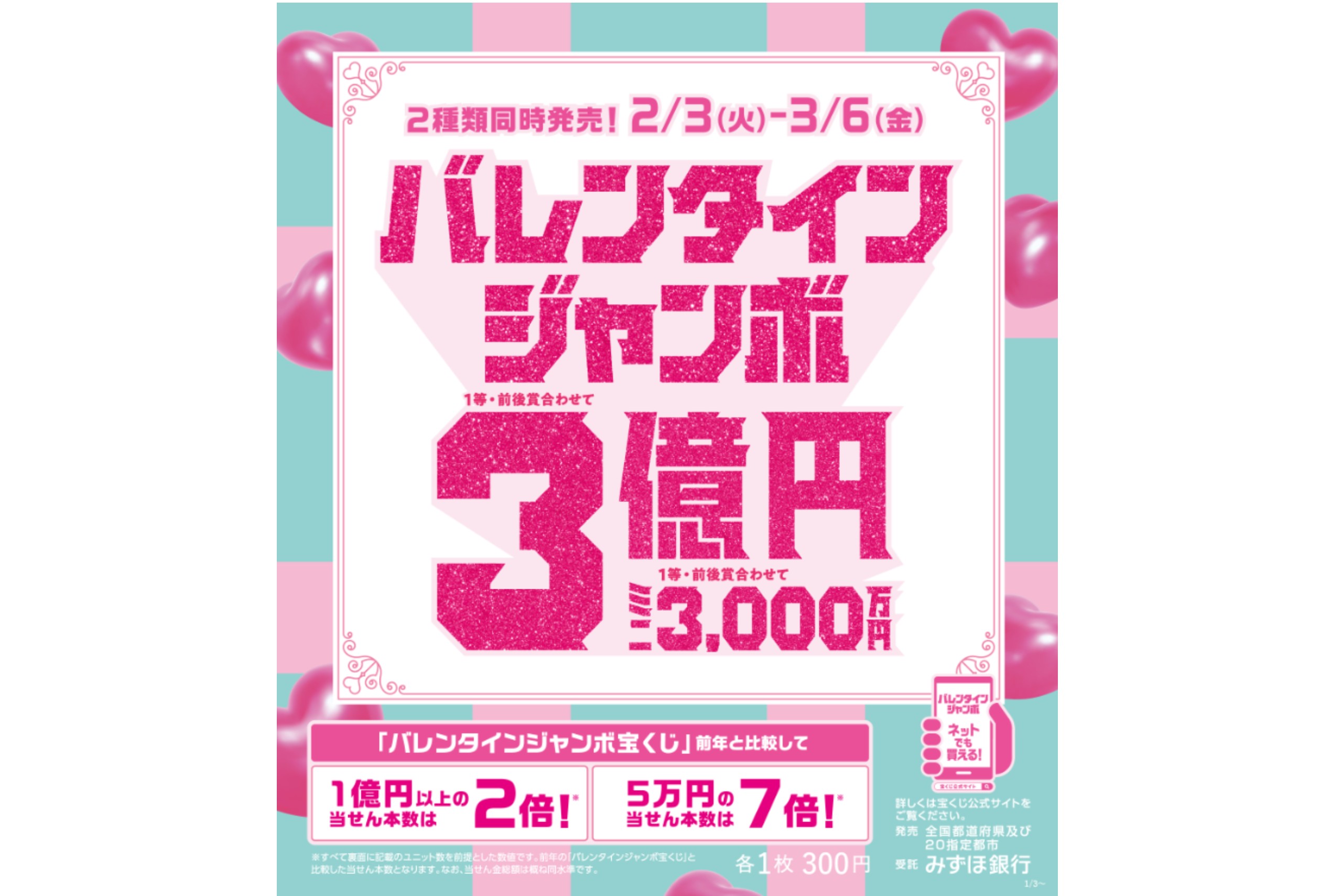 バレンタインジャンボミニ 1等・前後賞合わせて3,000万円