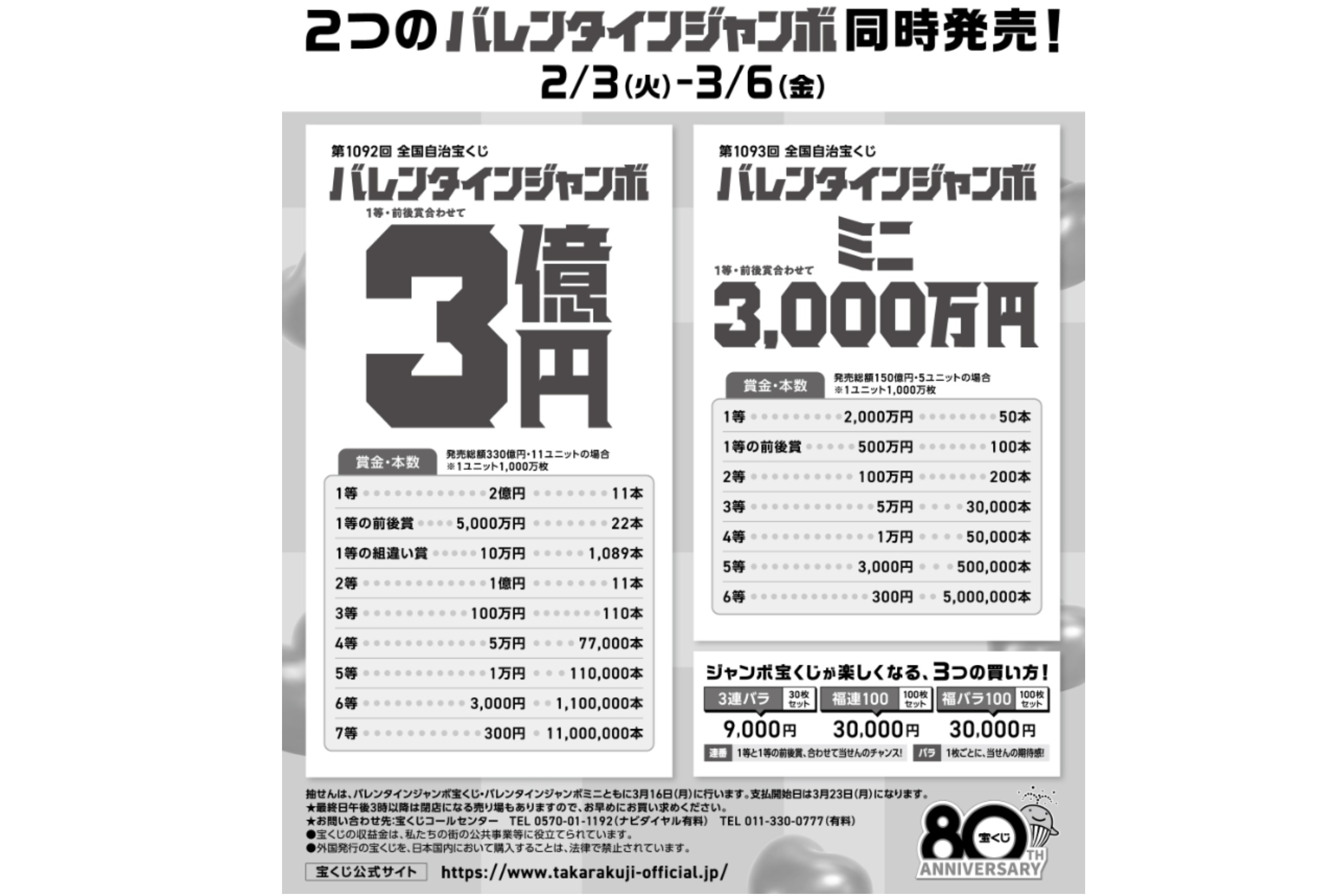 バレンタインジャンボ 1等・前後賞合わせて3億円