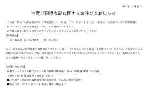 【plus on羽衣】消費期限誤表記に関するお詫びとお知らせ